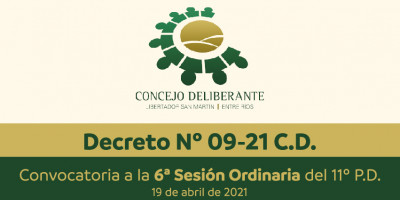 Convocatoria a 6ª Sesión Ordinaria CD (Decreto Nº 09-21 C.D.)