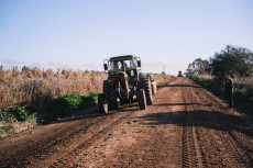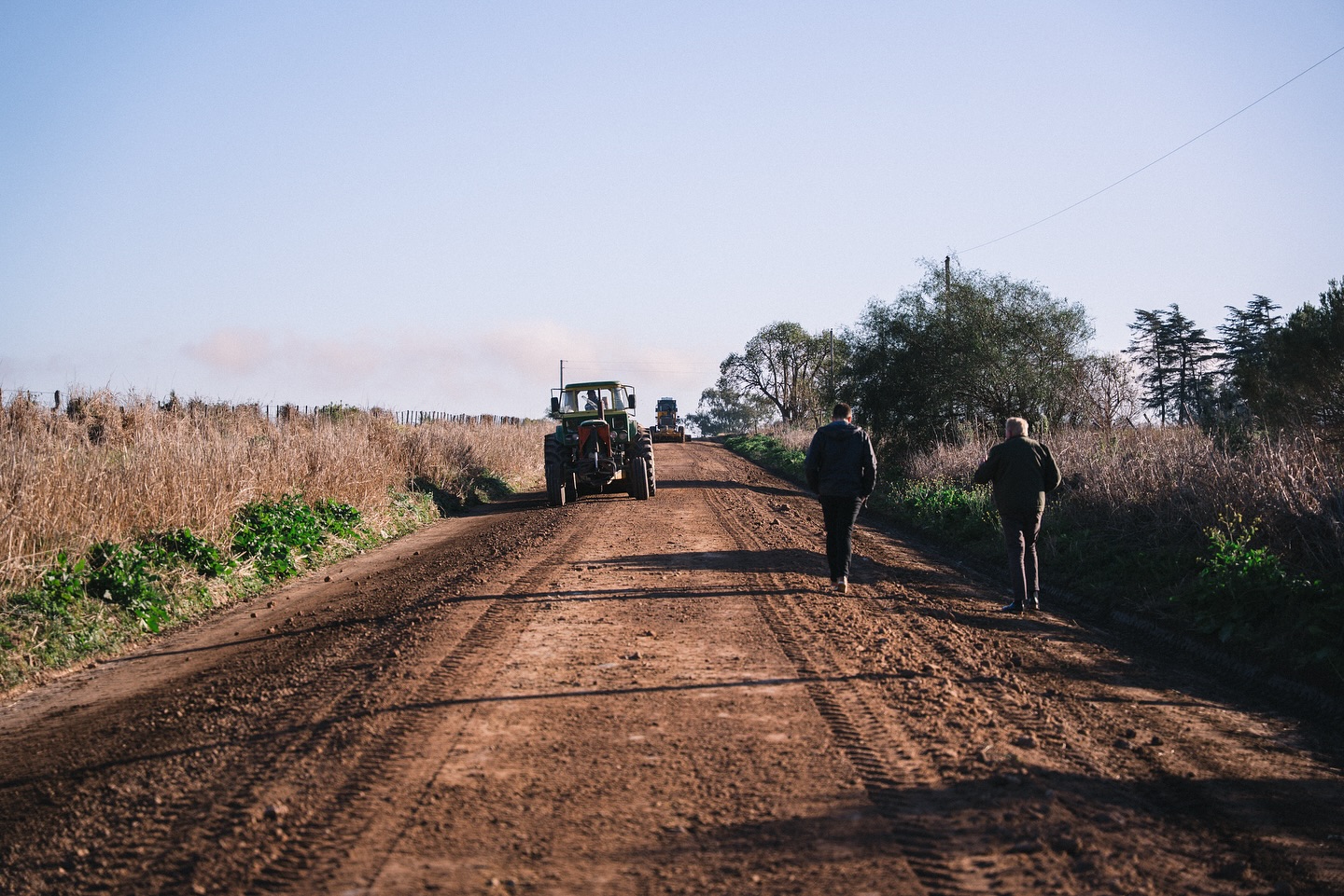 Trabajo en equipo para acondicionar un camino rural